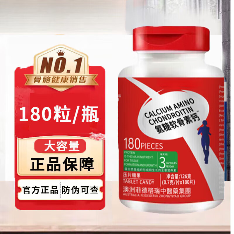 氨糖软骨素钙可搭氨糖软骨素钙补充钙维护骨骼中老年 1瓶*【氨糖软骨素钙180片/瓶】