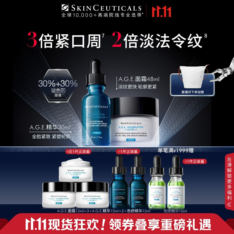 修丽可AGE精华30ml+AGE面霜48ml 抗老套装护肤品30%玻色因紧致生日礼物