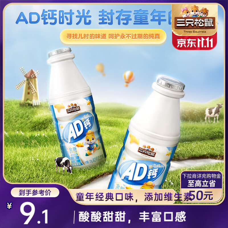 三只松鼠AD钙奶220g*4瓶儿童冲饮膏/浆童年怀旧维生素酸甜营养早餐牛奶