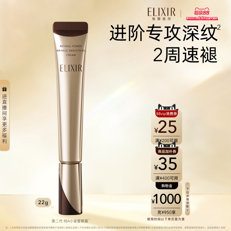 怡丽丝尔第二代纯A小金管眼霜22g抗皱保湿紧致淡化皱纹官方正品