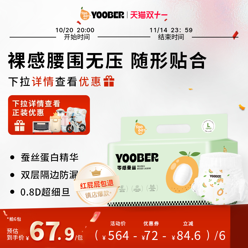 柚贝零感蚕丝超柔细旦拉拉裤宝宝夜用日用丝蛋白护臀干爽尿裤