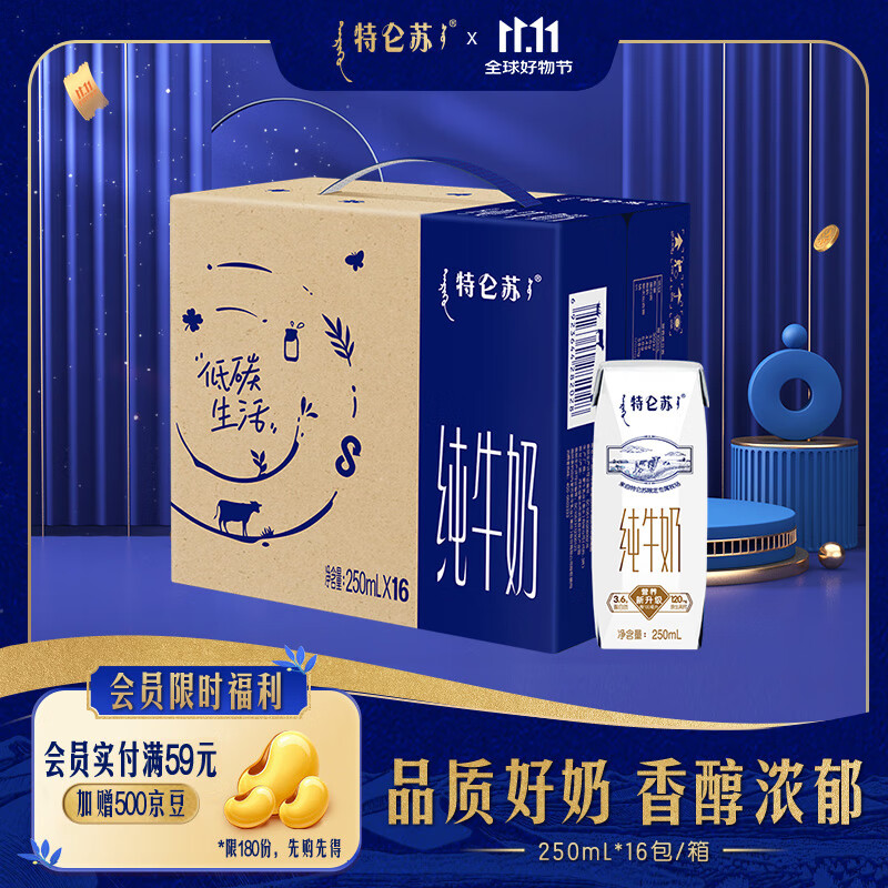 特仑苏纯牛奶利乐钻包装250ml*16瓶/箱