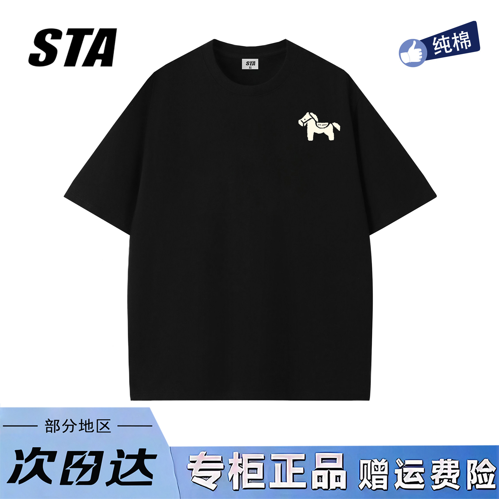 STA旗舰店美式潮牌重磅纯棉短袖男女夏季复古高街宽松情侣黑色t恤