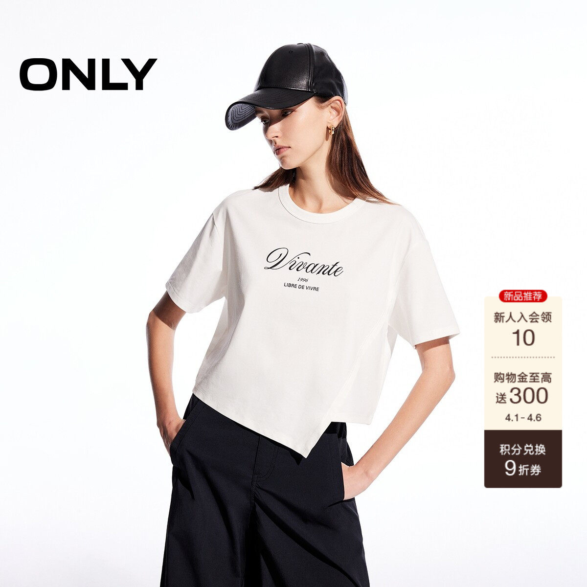 ONLY2026春季新款休闲字母印花个性不规则下摆宽松短款上衣T恤女