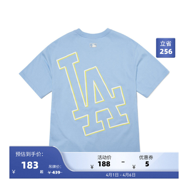 MLB官方 男女情侣T恤后背拼色大LOGO短袖休闲宽松夏季 TS330