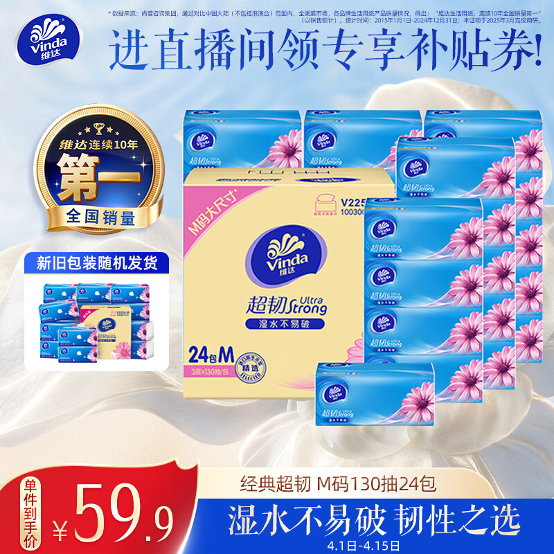 维达(Vinda)抽纸 【孙颖莎推荐】超韧3层130抽*24包M码 新旧随机 整箱