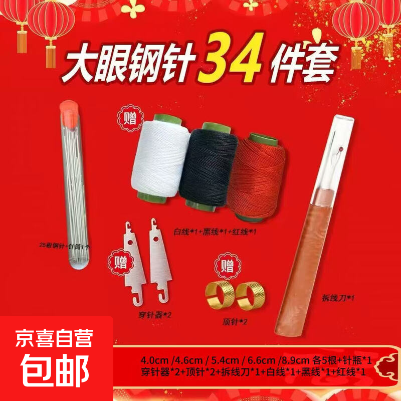 手工专用万能针一整套 34件套大鼻子大眼钢针 细长手工被子缝衣针长针家用 手工针线【34件套一套齐全】