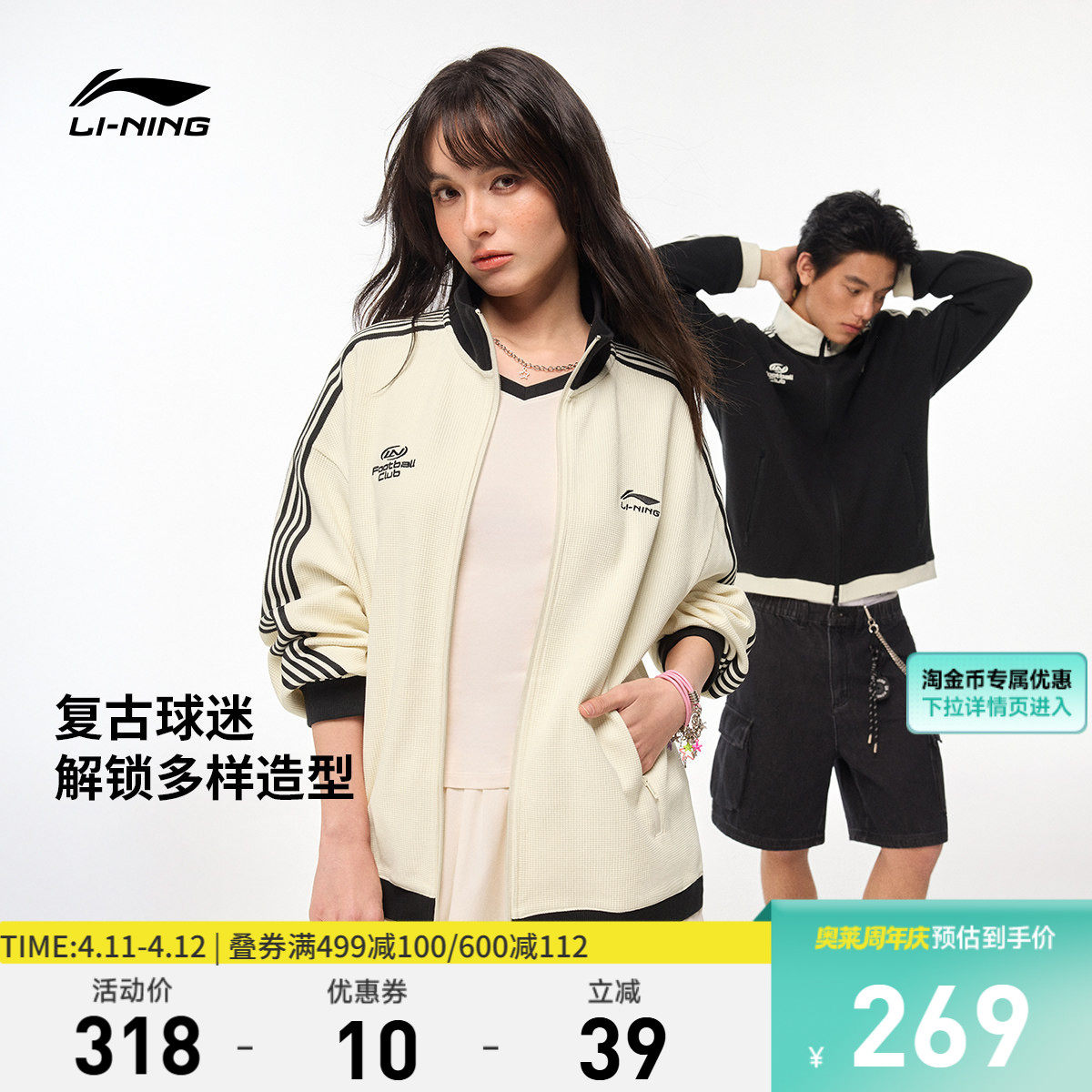 李宁外套女春季2026新情侣拉链美式立领卫衣休闲运动上衣针织男士