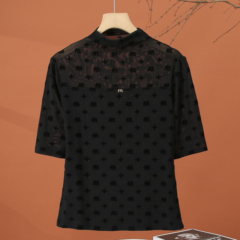 半高领网纱t恤女春夏2026新款洋气时尚打底小衫修身显瘦中袖上衣
