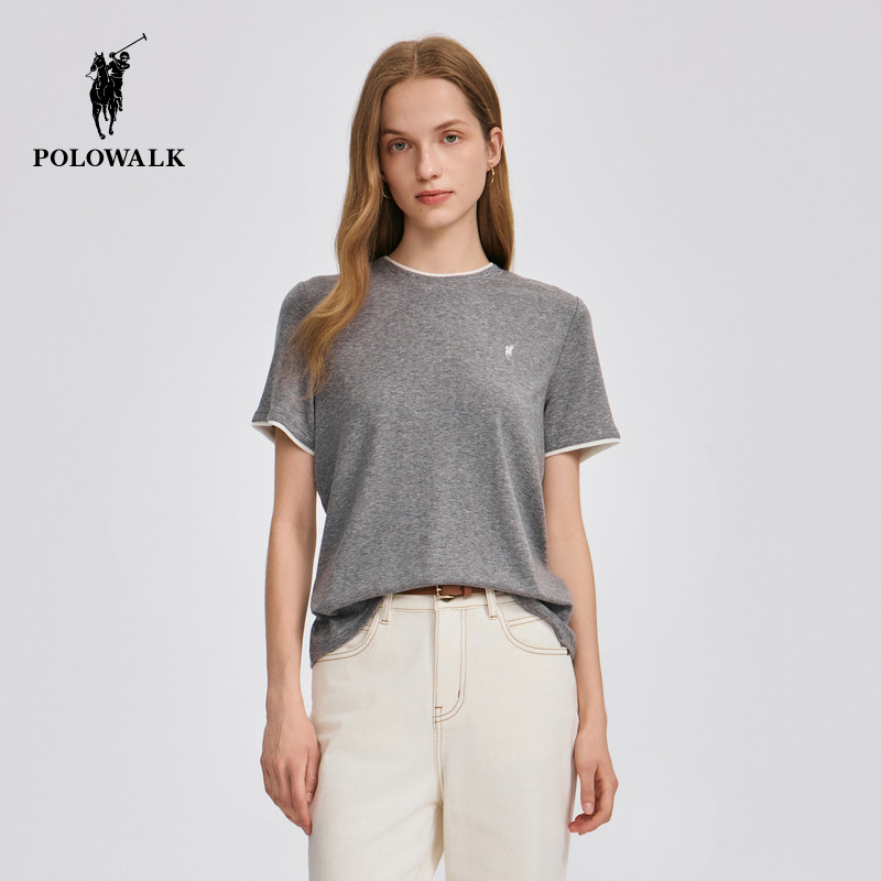 POLOWALK女装2026夏季新款女士短袖圆领T恤简约纯色百搭短袖t恤女