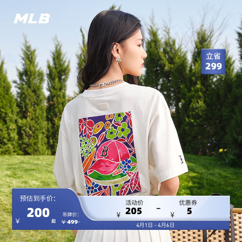 MLB官方 男女情侣时尚印花运动T恤休闲短袖宽松夏季TSEC8