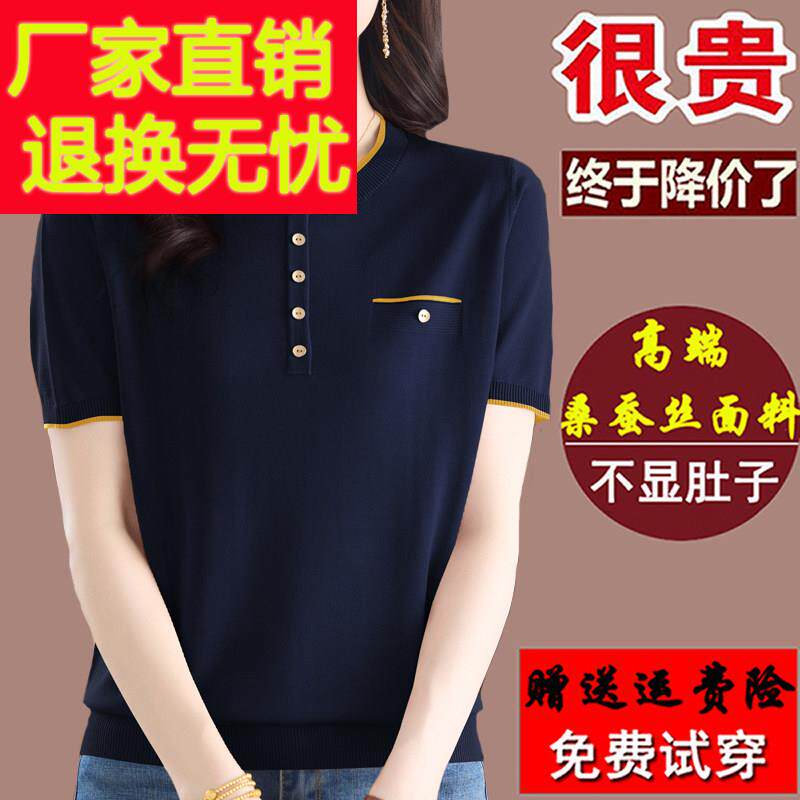 高端桑蚕丝短袖t恤女2025夏季新款圆领妈妈洋气遮肚上衣大码小衫