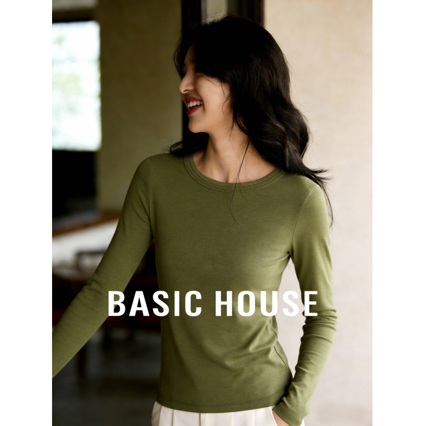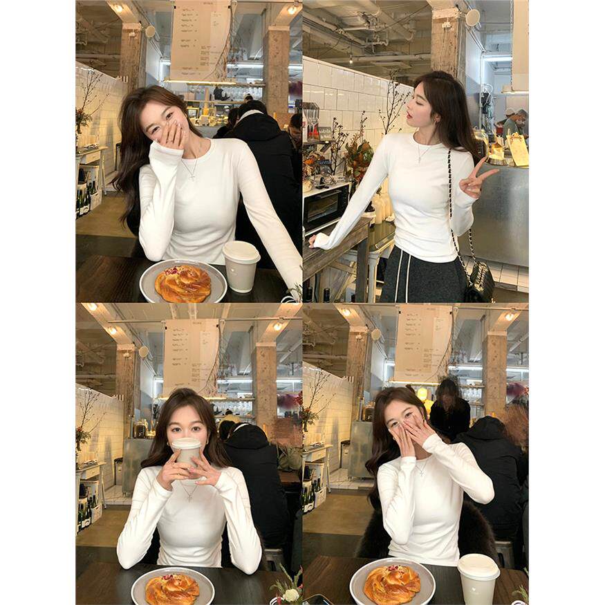 77Store拉丝加厚直角肩圆领Kendou女春秋季白色长袖内层衬衫t恤