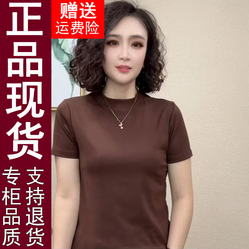 高端大牌桑蚕丝t恤女七分袖小衫夏季女装上衣洋气妈妈蕾丝大码T恤