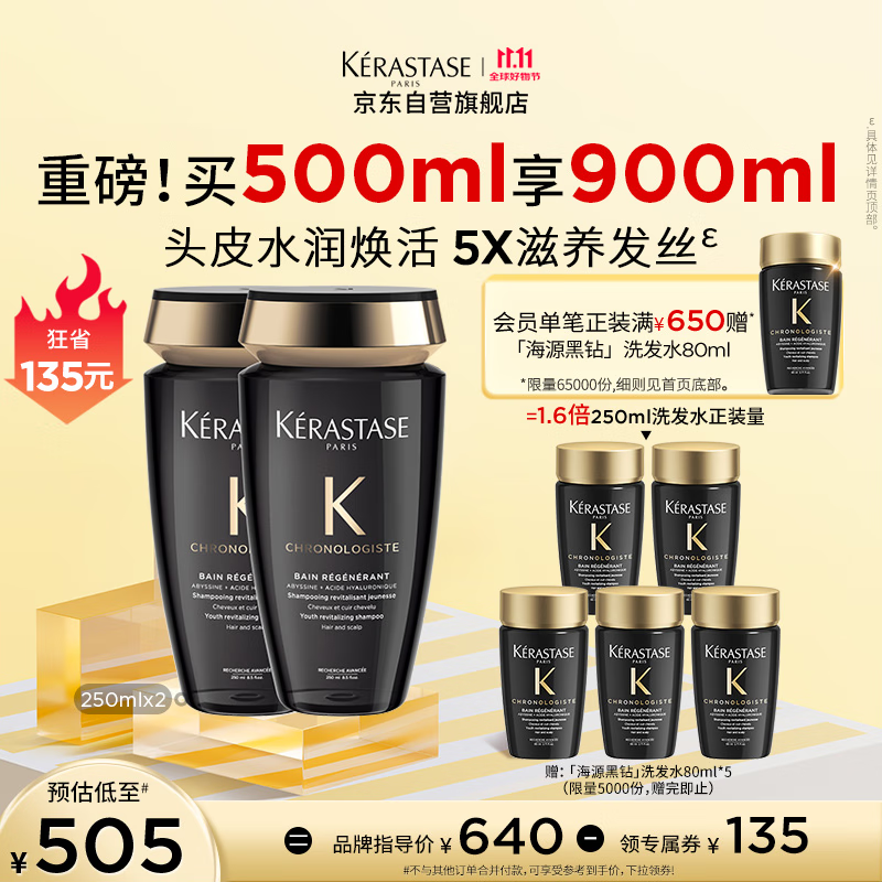 卡诗*海源黑钻洗发水250ml*2滋养强韧水润柔顺深层清洁顺滑亮泽防毛躁