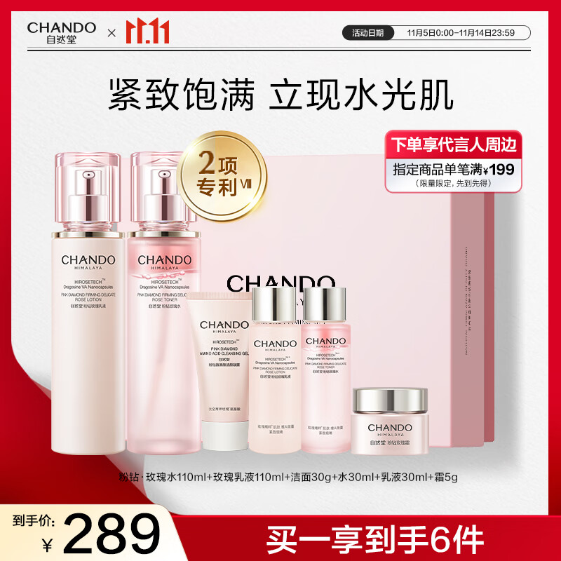 自然堂【龚俊同款】粉钻紧致玫瑰水乳礼盒 充盈弹润抗皱护肤品套装