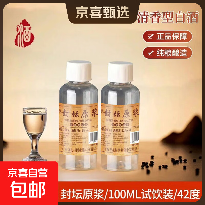 42度53度山西杏花村汾酒产地纯粮原浆清香型散酒纪念酒 42度 100mL 1瓶 封坛原浆【尝鲜款】