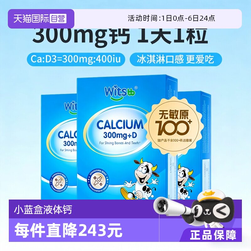 【自营】witsbb健敏思小蓝盒液体钙敏宝专研婴幼儿儿童钙K2d3*3盒