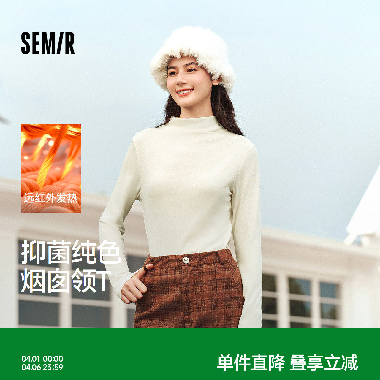 森马长袖T恤女冬半高领发热抑菌纯色修身上衣显瘦百搭气质打底衫