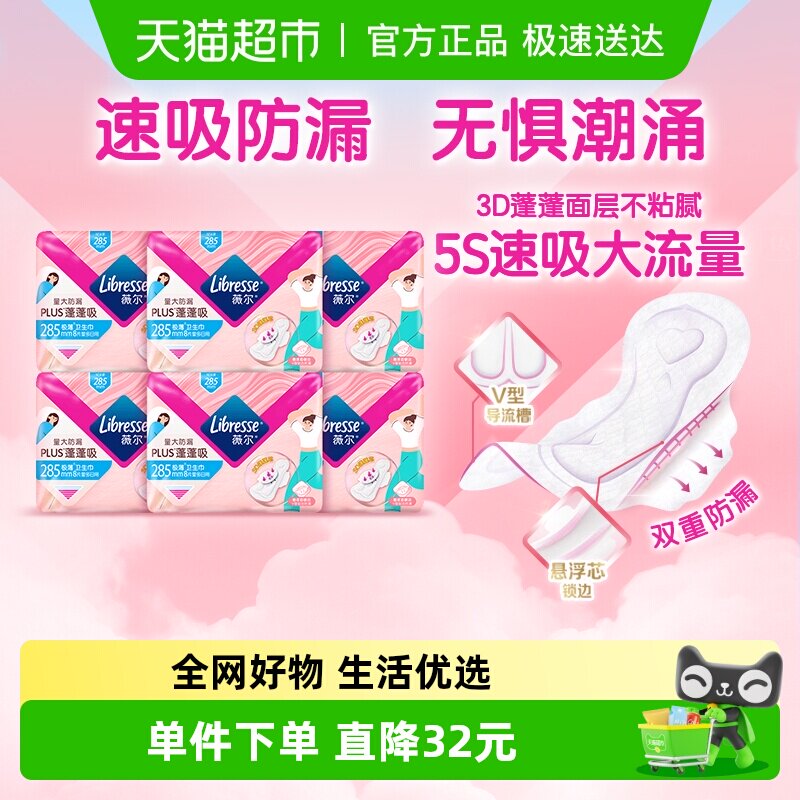 libresse薇尔PLUS蓬蓬吸285mm8片*6包长日用卫生巾
