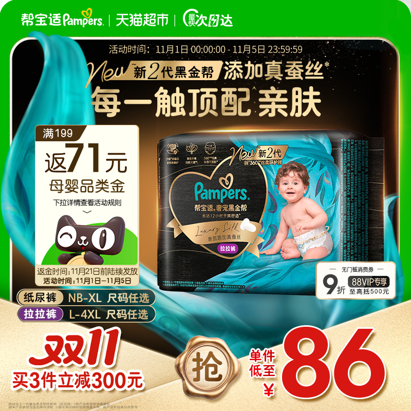 【添加真蚕丝】新帮宝适黑金帮纸尿裤拉拉裤NB-4XL超薄尿不湿