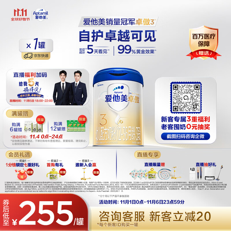 爱他美(Aptamil)卓傲幼儿配方奶粉3段(12—36月龄) 800g*1罐 卓傲自护益生元