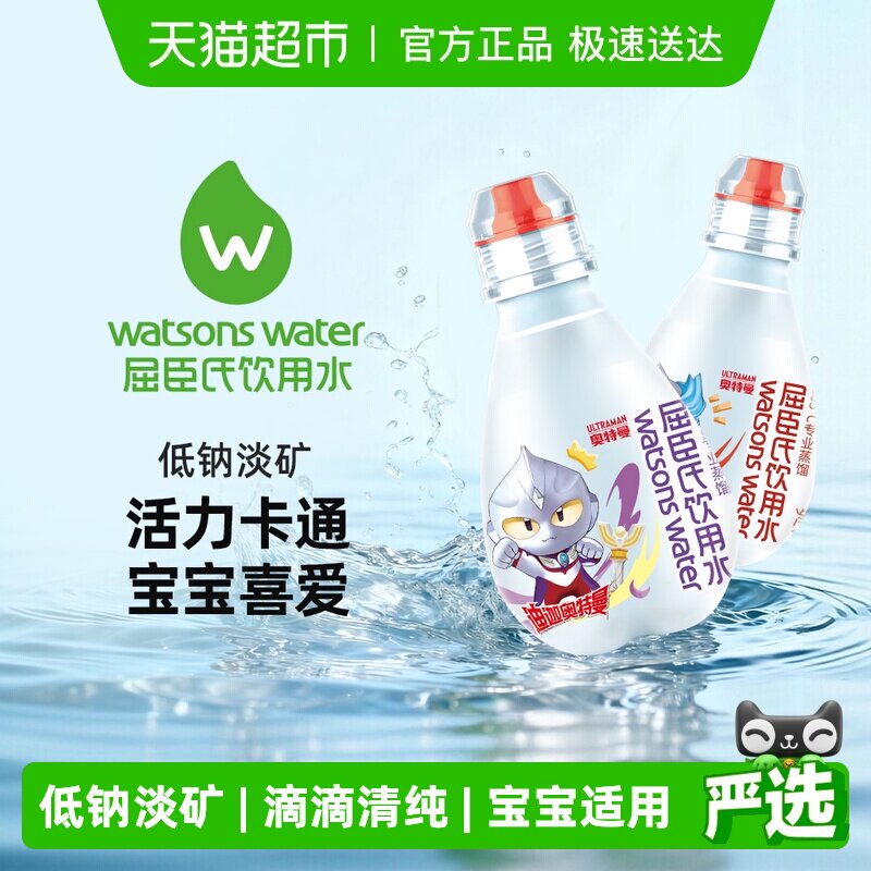 屈臣氏儿童饮用水奥特曼联名款宝宝蒸馏水整箱纯净便携小瓶非矿泉