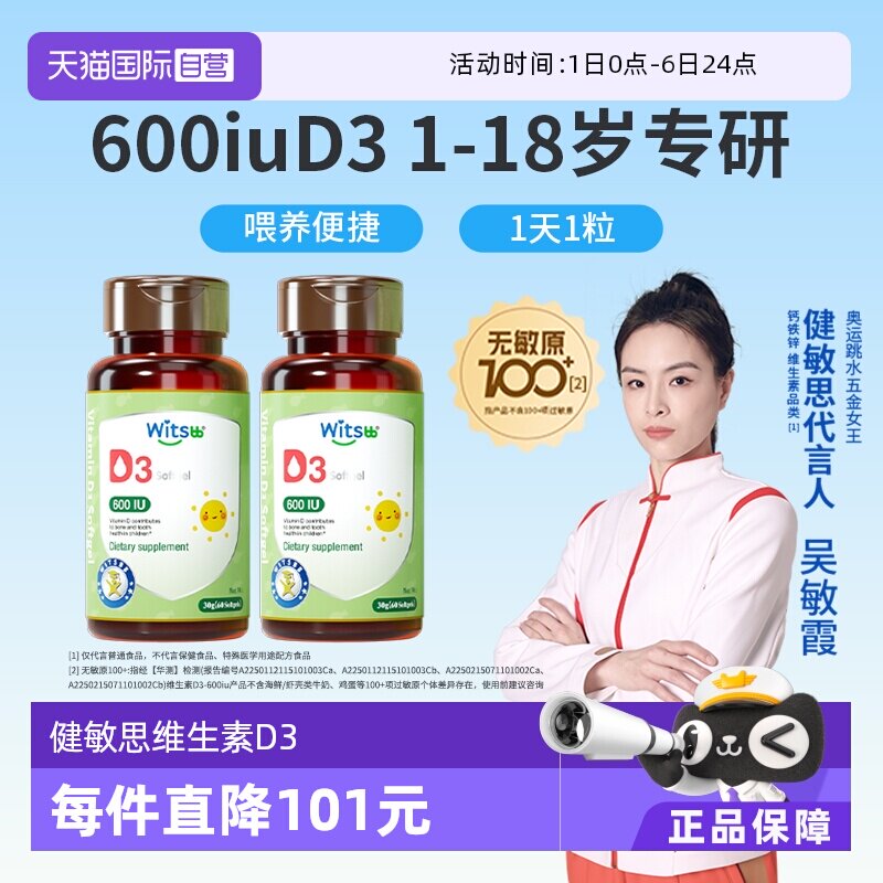 【自营】witsbb健敏思植物维生素d婴幼儿童维生素d3vd600iu60粒*2
