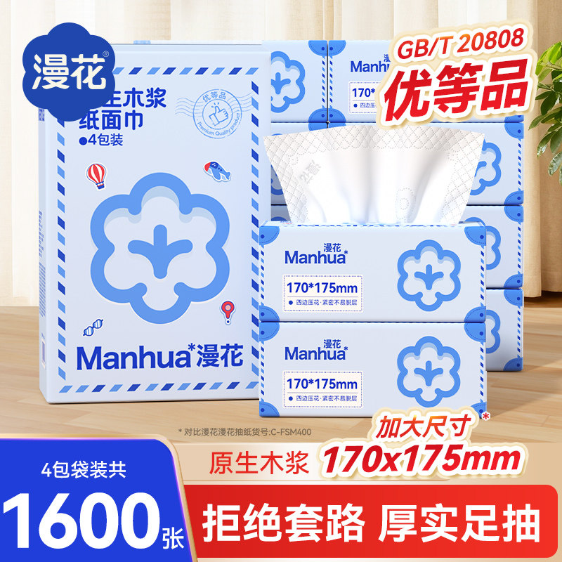 漫花400张巨无霸抽纸面巾纸家用实惠装囤货原生木浆纸卫生纸家用