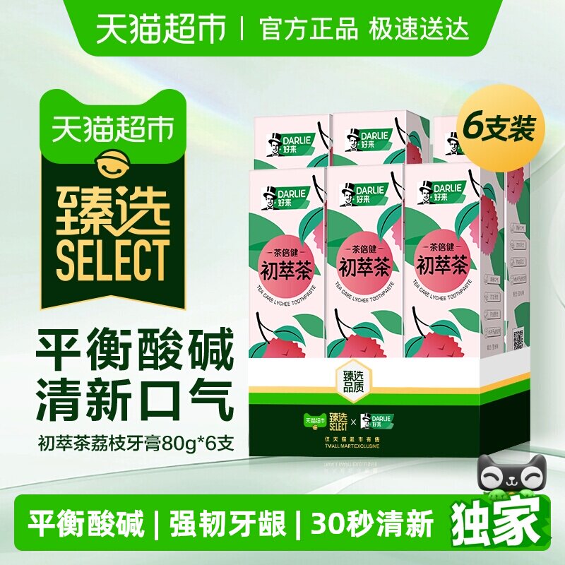 臻选DARLIE好来(原黑人)茶倍健初萃茶荔枝牙膏80g*6平衡酸碱