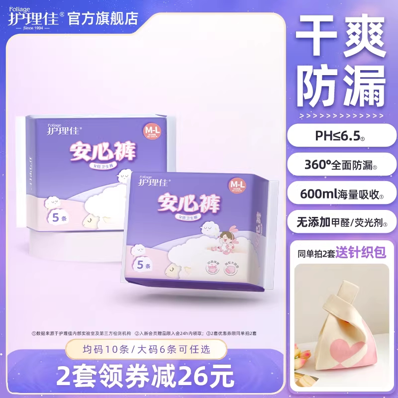 护理佳安睡裤xl加大码220斤少女卫生巾经期用防漏安心裤官方正品