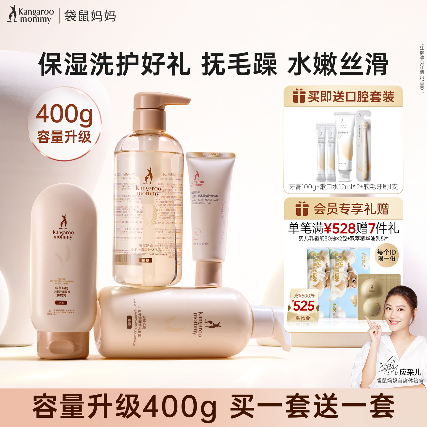 袋鼠妈妈洗护套装控油去屑洗发水保湿沐浴露护发三件套专用护肤品