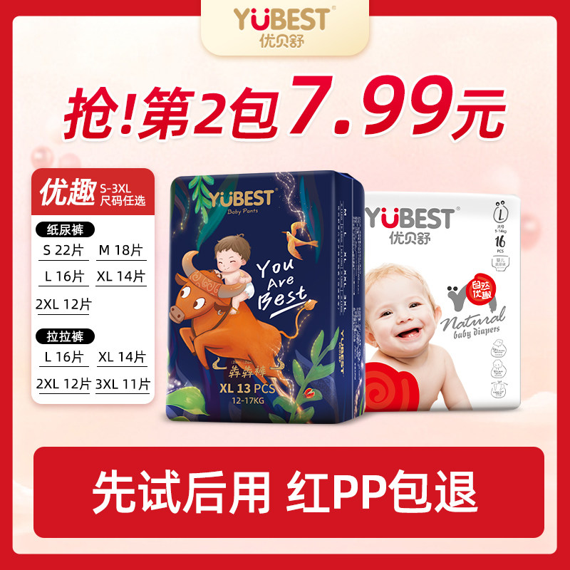 优贝舒拉拉裤超薄透气纸尿裤尿不湿新生婴儿一体裤宝宝干爽学步裤
