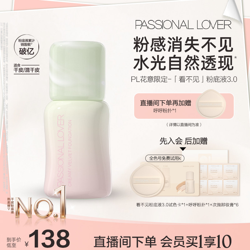 【立即抢购】PL看不见粉底液3.0干皮无瑕 滋润保湿服帖持久不脱妆