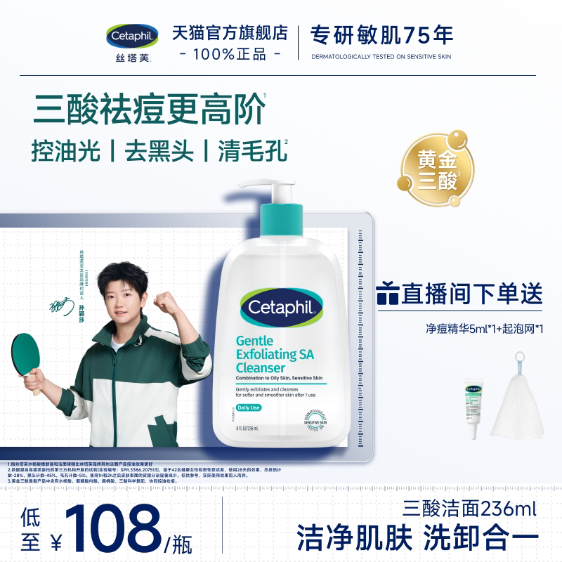 丝塔芙cetaphil三酸洁面水杨酸洗面奶油痘油敏感肌控油祛痘清毛孔