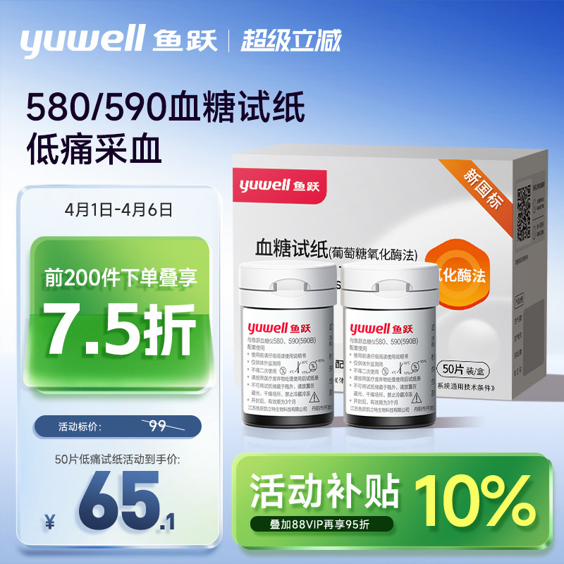 鱼跃580/590血糖测试仪家用试纸条低痛感精准测血糖老人官方旗舰