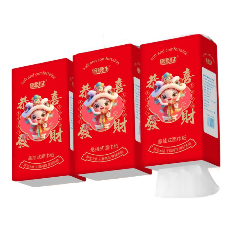 恭喜发财大提挂式抽纸4层1000张抽取式纸抽卫生纸节庆婚庆用纸 一提活动装(4层250抽)
